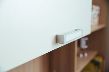 2. Фасады обрамлены цветной кромкой Ясень шимо светлый.