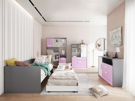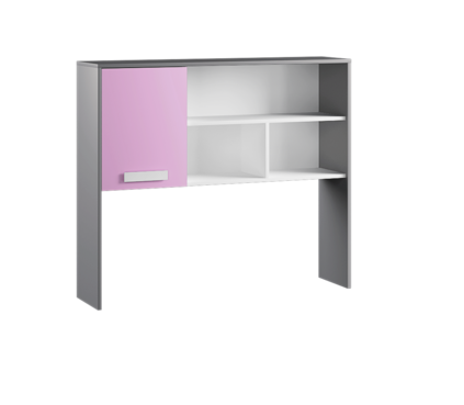 Чтобы превратить письменный стол в полноценное рабочее место, стоит обратить внимание на надстройку для стола. Ниша за глухим распашным фасадом вместит в себя личные вещи ребенка, а открытые полки - то, что должно быть под рукой в процессе учебы и хобби. Сочетание открытых и закрытых зон хранения облегчает конструкцию и украшает интерьер комнаты.